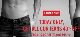 A&F's latest Monday sale saves you 40% off all their jeans between 12noon and 8PM Eastern, today Oct 18th only (and for US & Canadian customers)... and this deal is online only at Abercrombie and Fitch.